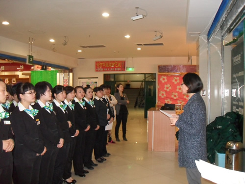 收銀部經(jīng)理韓曉麗主持動(dòng)員會(huì)議