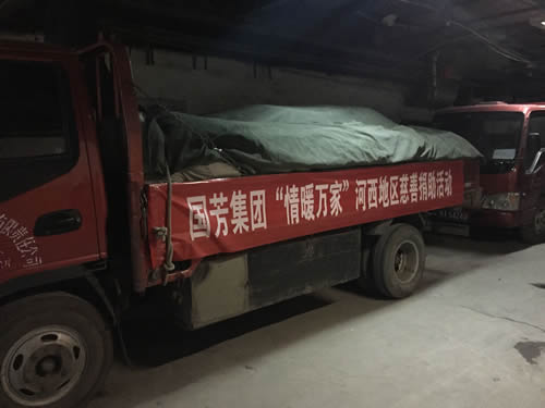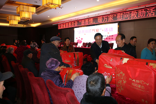 2016年12月12日,甘肅省慈善總會(huì)、武威市民政局?jǐn)y甘肅國(guó)芳工貿(mào)(集團(tuán))股份有限公司共同舉行“情暖萬家”送溫暖活動(dòng),將100萬元資金以及價(jià)值100萬元的過冬棉服帶給天?h岔口驛敬老院的老人們。當(dāng)日下午,甘肅省慈善總會(huì)與甘肅國(guó)芳工貿(mào)(集團(tuán))股份有限公司的各位愛心人士又馬不停蹄的趕赴張掖為當(dāng)?shù)氐墓鹿牙先藥チ?60萬元資金以及價(jià)值250余萬元的過冬衣物及被褥。此次活動(dòng)傳導(dǎo)社會(huì)幫扶、精準(zhǔn)扶貧精神的同時(shí)也默默為社會(huì)傳導(dǎo)著一份正能量。