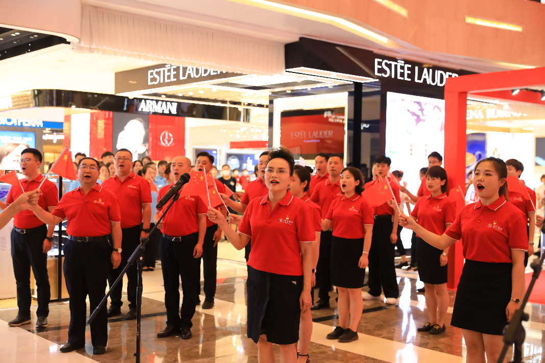 下午14時,國芳集團(tuán)慶祝中國共產(chǎn)黨成立100周年紅歌快閃活動在蘭州國芳百貨廣場店一樓中廳隆重舉行。國芳集團(tuán)全體黨員及員工代表參與其中,大家用歌聲表達(dá)對黨的無限忠誠和美好祝福。